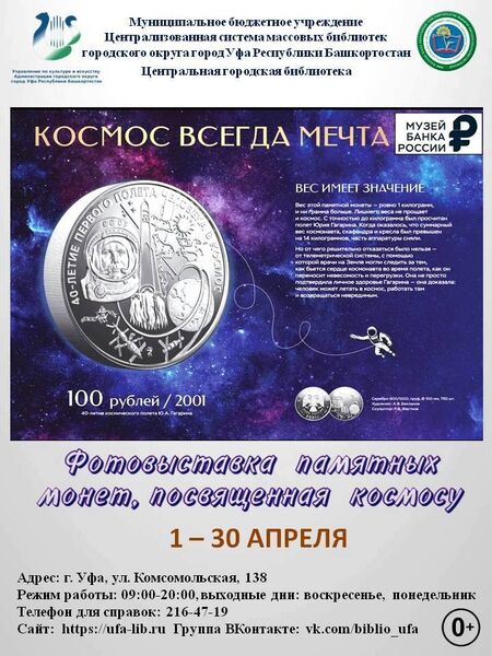 В Центральной городской библиотеке начала работу выставка Банка России «Космос всегда мечта». Ее открытие приурочено ко Дню космонавтики.