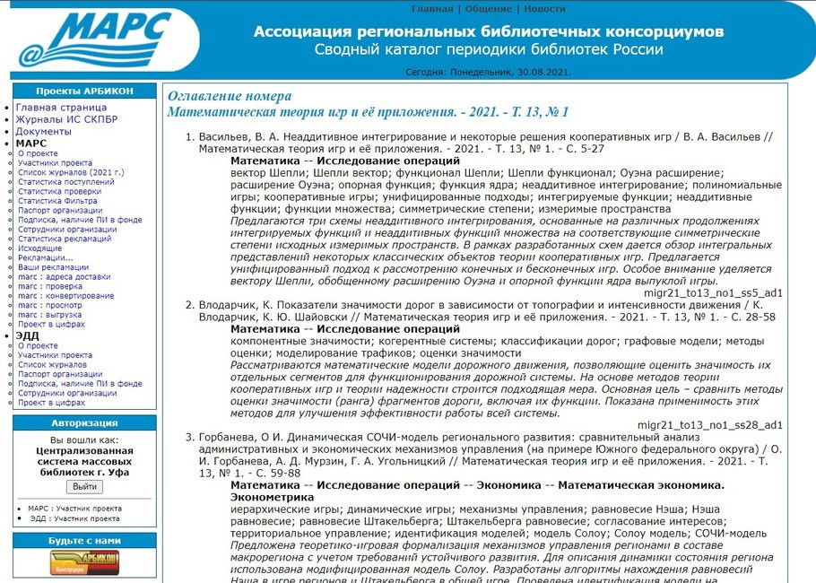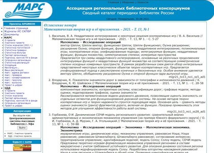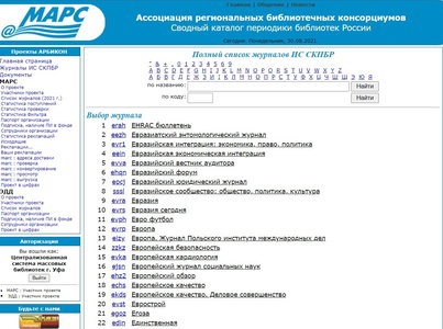 МАРС (Межрегиональная аналитическая роспись статей) – это проект АРБИКОНа (Ассоциации региональных библиотечных консорциумов), который работает уже 20 лет с 2001 года и объединяет более 240 библиотек различных систем и ведомств России, Белоруссии, Казахстана.
