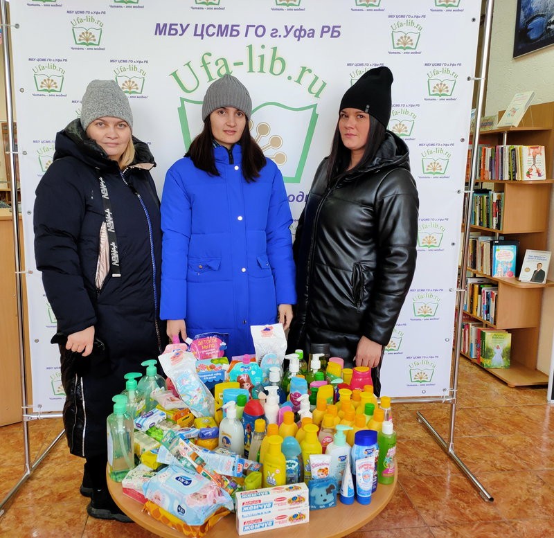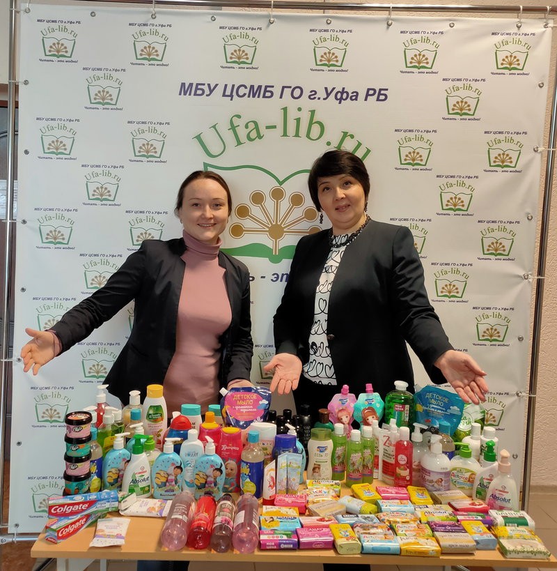 Сбор помощи проходил на базе Центральной городской библиотеки г. Уфы. Для детей сирот и детей с ОВЗ мы собрали различные предметы личной гигиены: шамнуни, гели для душа, мыло и т. д.