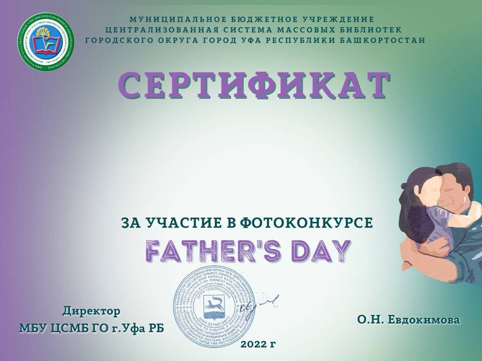 С 12 сентября по 13 октября в Уфе проходил фотоконкурс «Father's Day», посвященный Дню отца. Его организатором выступила Центральная городская библиотека МБУ ЦСМБ ГО г. Уфа РБ.
