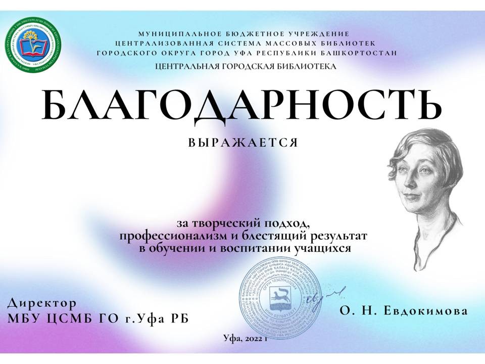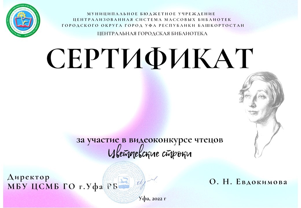 С 8 октября по 15 ноября в Уфе проходил видеоконкурс чтецов «Цветаевские строки», посвященный 130-летию со дня рождения русской поэтессы Марины Цветаевой. Организатором конкурса выступила Центральная городская библиотека МБУ ЦСМБ ГО г. Уфа РБ.