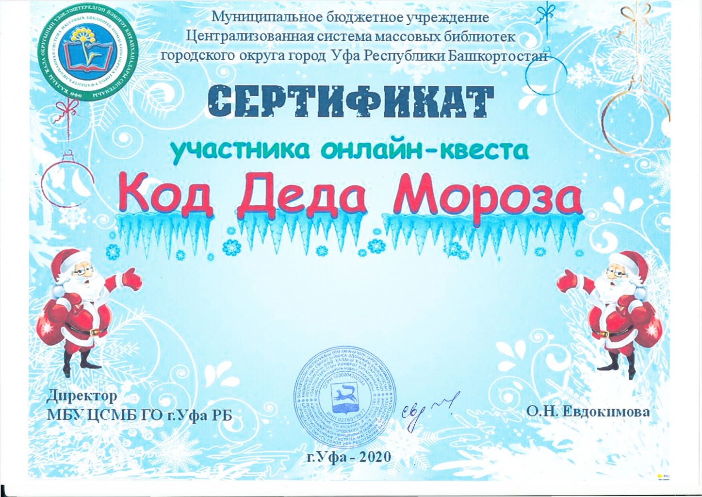 В преддверии этого долгожданного события, с 3 по 21 декабря Центральная городская библиотека г. Уфы запустила квест «Код Деда Мороза», который прошел на на официальном сайте МБУ ЦСМБ ГО г. Уфа РБ https://ufa-lib.ru/.