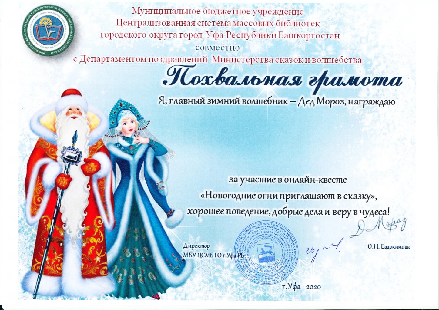 В последние дни уходящего года, Центральная городская библиотека г. Уфы запустила онлайн-квест «Новогодние огни приглашают в сказку».