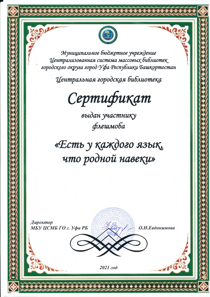 Участники флешмоба чтений станут обладателями электронного сертификата, который доступен для скачивания на официальном сайте МБУ ЦСМБ ГО г. Уфа РБ https://ufa-lib.ru/.