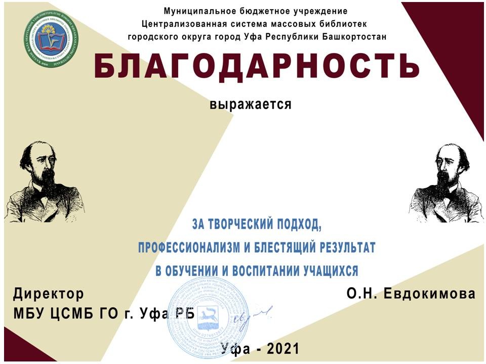 Организатором конкурса выступила Центральная городская библиотека МБУ Централизованной системы массовых библиотек ГО г. Уфа РБ.