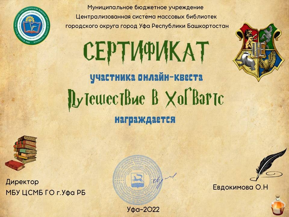 Центральная городская библиотека г. Уфы посвятила любимому многими произведению увлекательный on-line квест «Путешествие в Хогвартс».