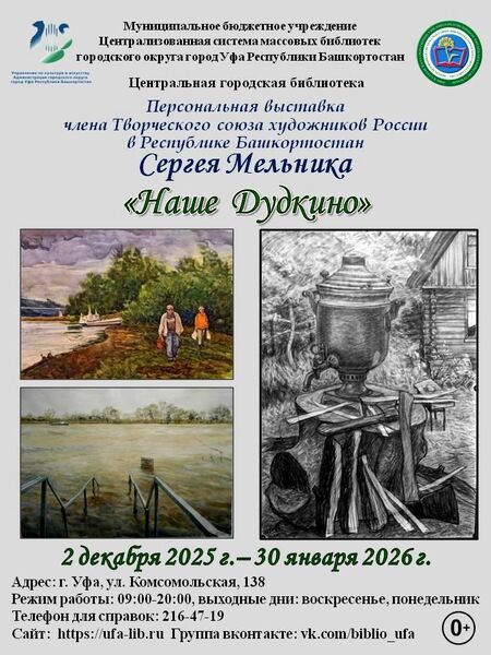 В выставочном зале Центральной городской библиотеки открылась персональная выставка художника-графика, члена Творческого союза художников России в Республике Башкортостан Сергея Мельника «Наше Дудкино».