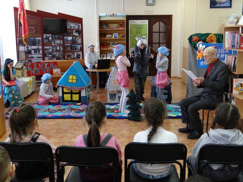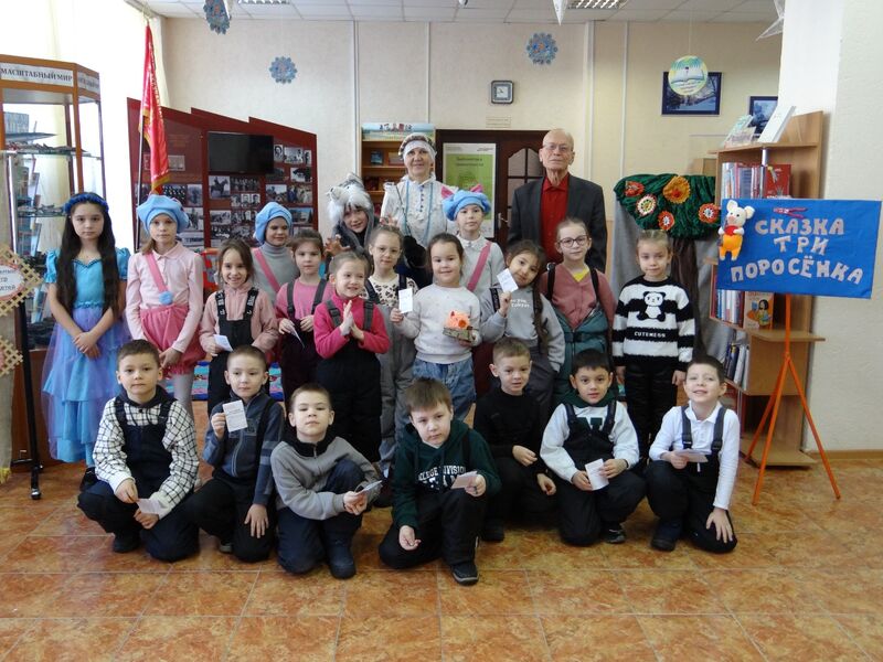 18 февраля Центральная городская библиотека распахнула свои двери для самых юных любителей сказок! В этот день малыши из подготовительной группы детского сада № 130 «Тургай» отправились на встречу с героями сказки Сергея Михалкова «Три поросенка».